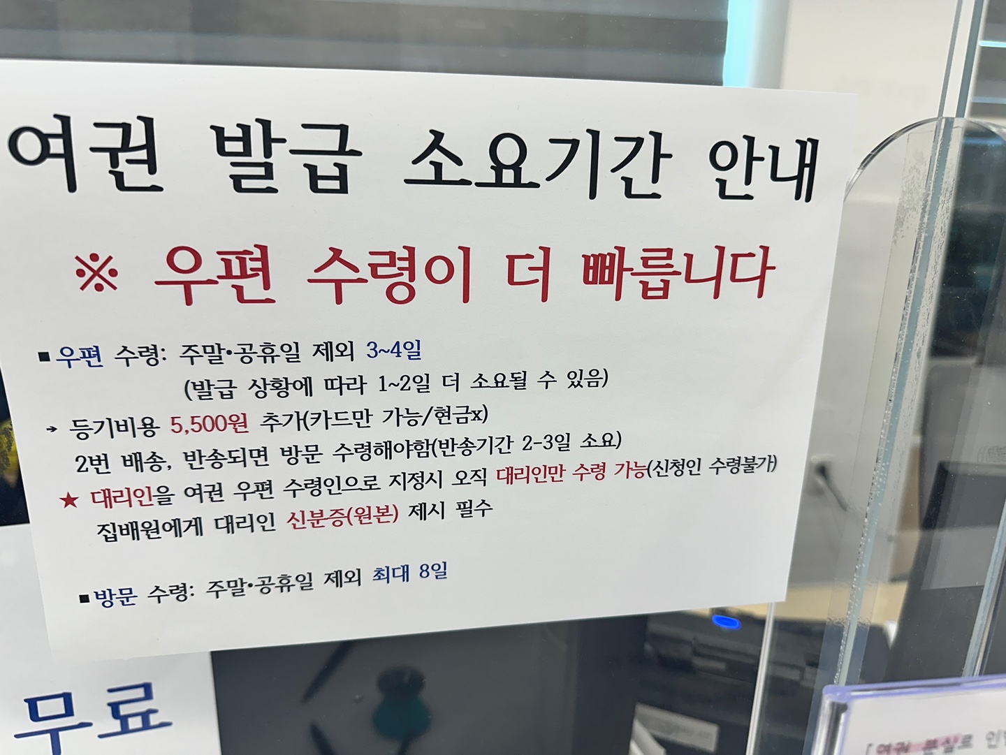 여권 발급 비용과 방문수령, 우편수령했을 때 여권 수령기간은