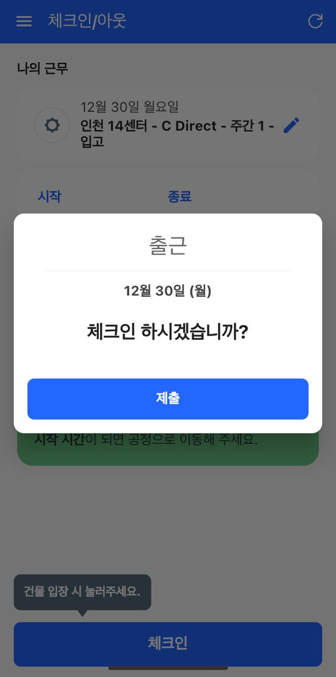 쿠팡 물류센터에 도착해서 체크인하는 방법