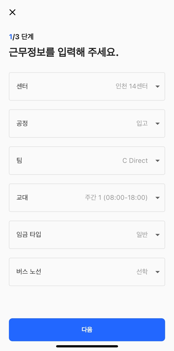 센터, 공정, 팀, 교대, 임금 타입, 버스노선을