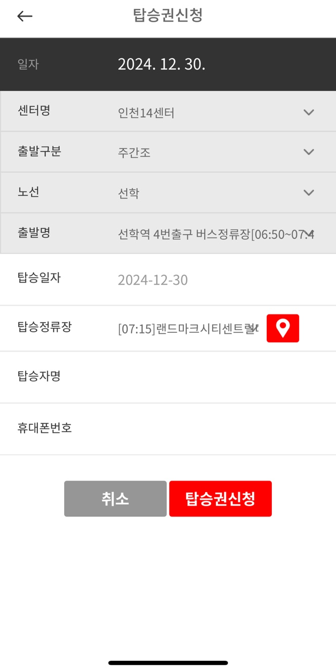 쿠팡 셔틀 어플로 탑승권신청도 해야 합니다.
