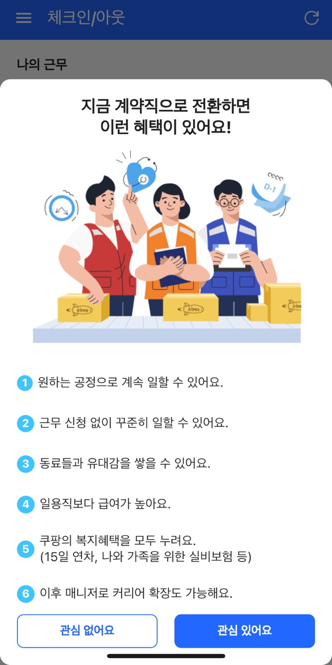 계약직 전환에 대해 '관심 있어요'를 누르면