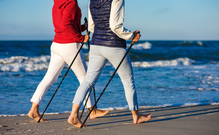 노르딕 걷기는 스틱으로 바닥을 찍으며 걷기 때문에 보폭이 넓어져 근육 사용량이 많게됩니다. 따라서 다량의 에너지가 소비되므로 운동 효과가 높아 당뇨, 고혈압, 비만 같은 질환을 개선하는 데 도움이 됩니다. 또한 스틱에 체중이 분산되므로 뼈와 관절에 가해지는 충격이 적으며, 넓은 보폭으로 걸어서 척추 교정과 바른 자세 유지에 효과적입니다. 이외에 심폐 기능 및 지구력 향상과 면역력 증진, 우울증 개선에도 좋습니다.