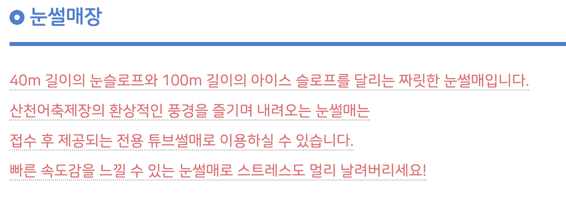 전용 튜브 썰매 이용(보호자동반 탑승 불가)/ 기타 썰매 사용 불가