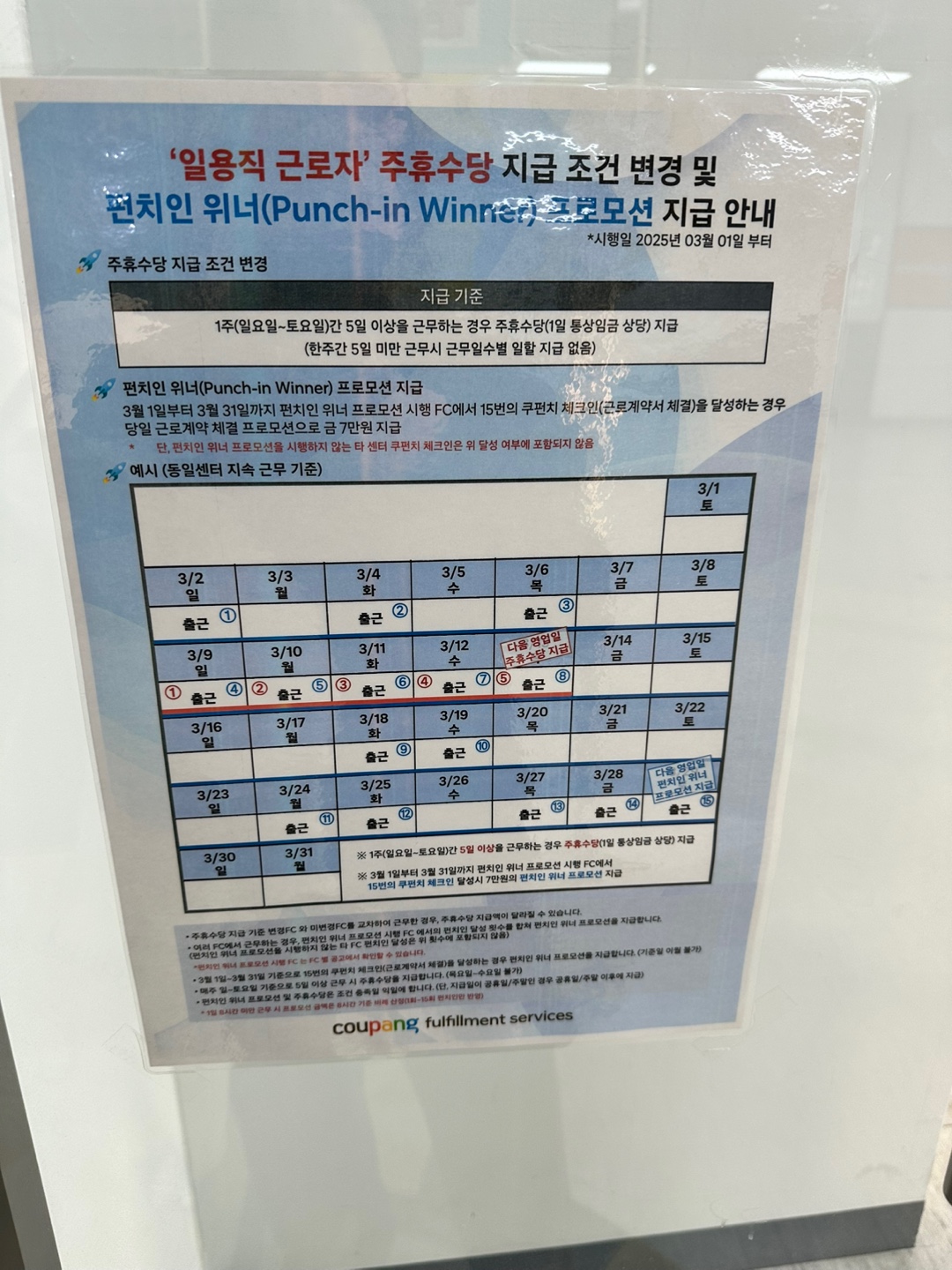 쿠팡 물류센터 주휴수당 지급 기준 변경