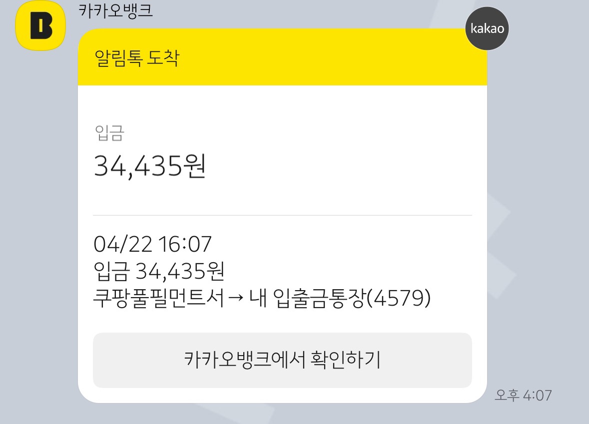쿠팡 일급 입금 시간은 오후 4시 7분